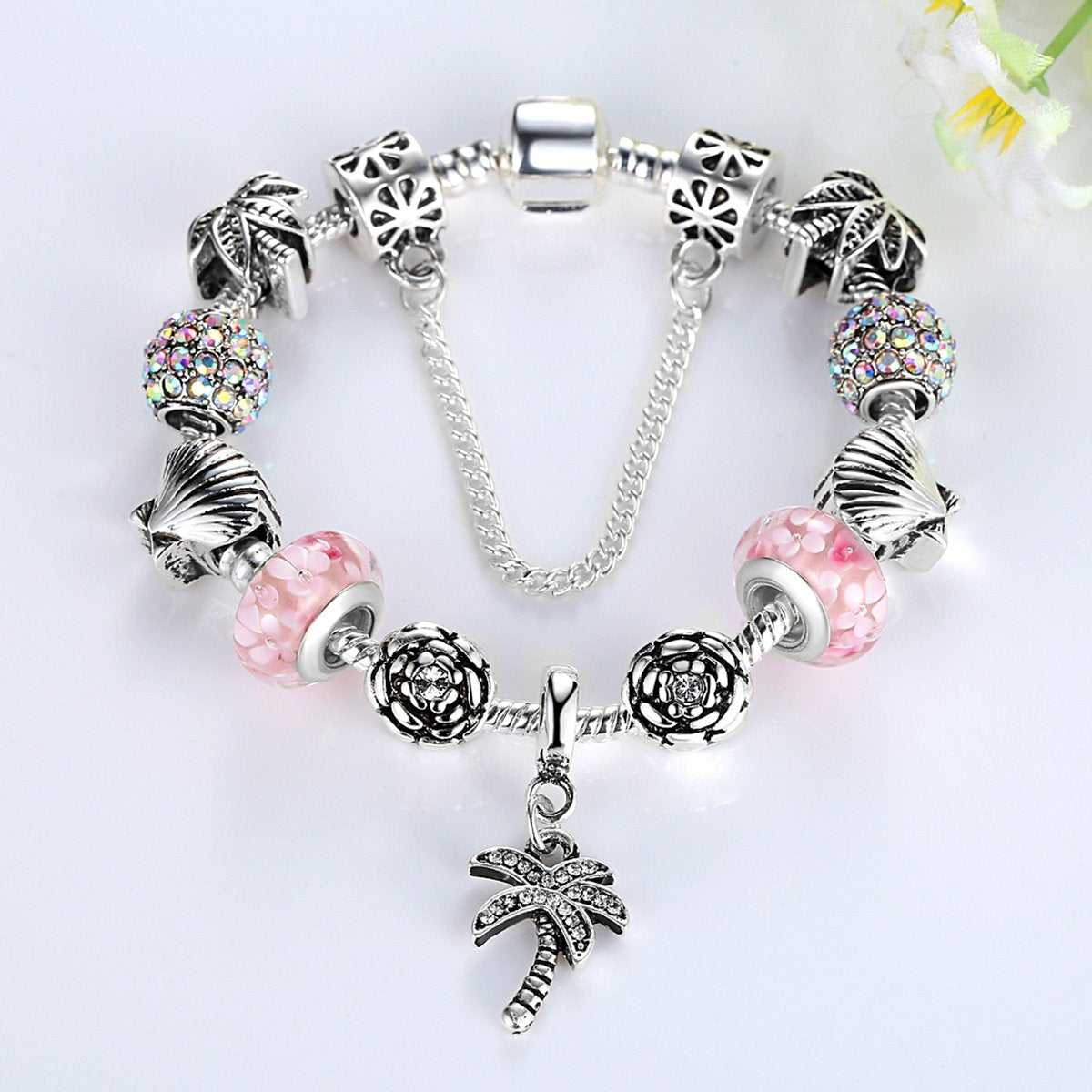 - Design: Aurora Borealis Crystal Palm Tree and Pink Murano Glass Charms