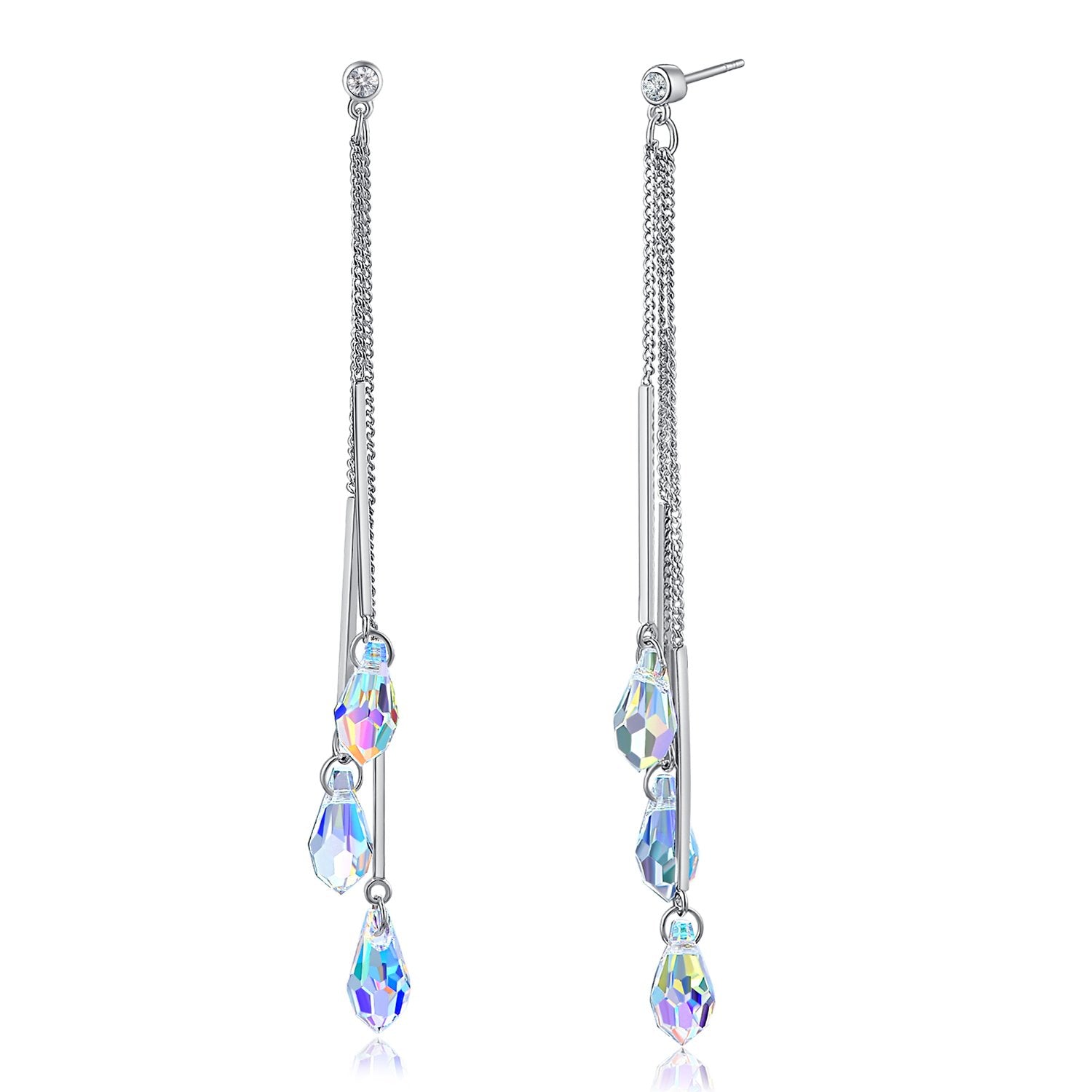 Aurora Borealis Swarovski Crystal Asymmetrical Drop Earrings