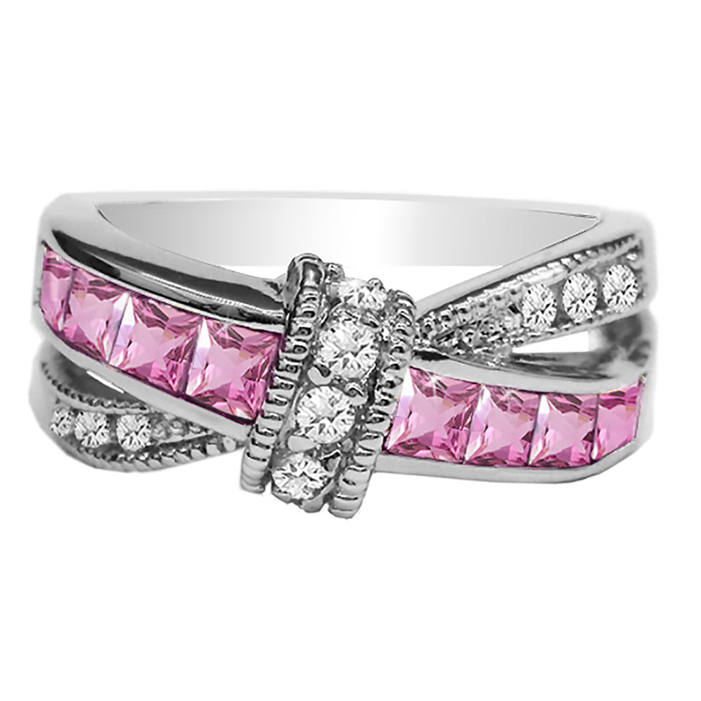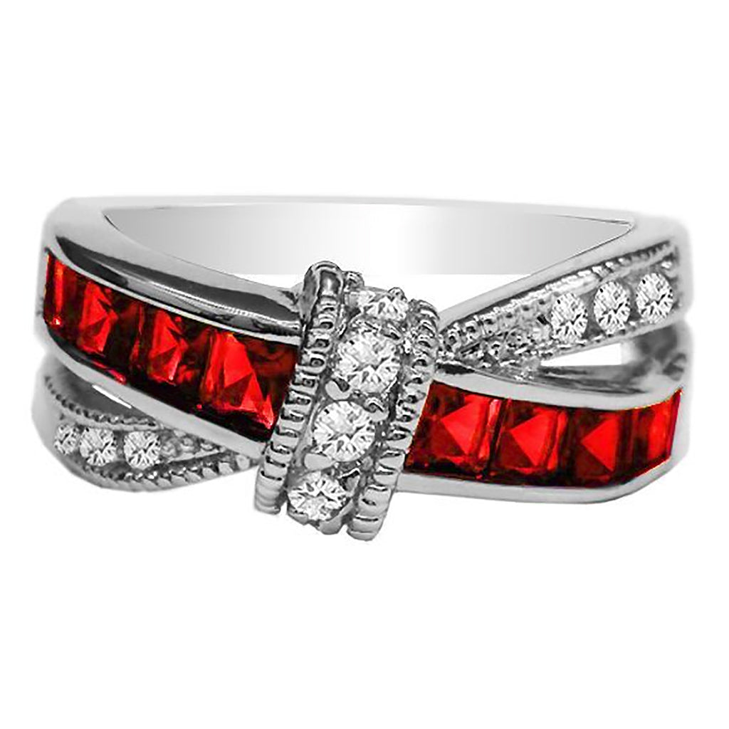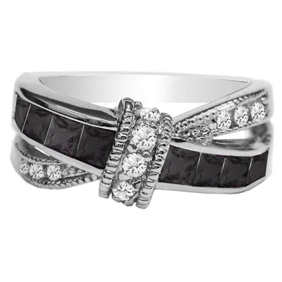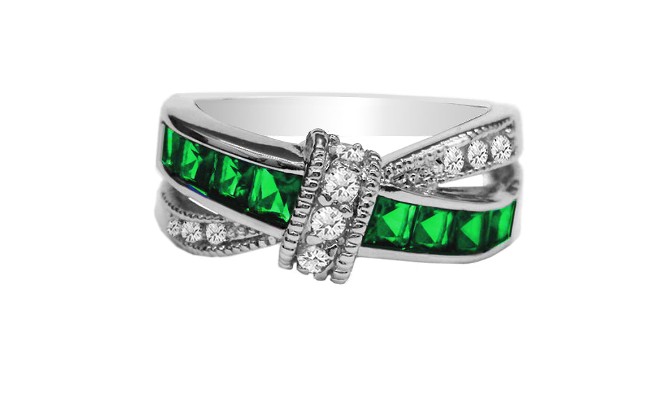 Criss-Cross Ring with Cubic Zirconia in Rhodium Plating