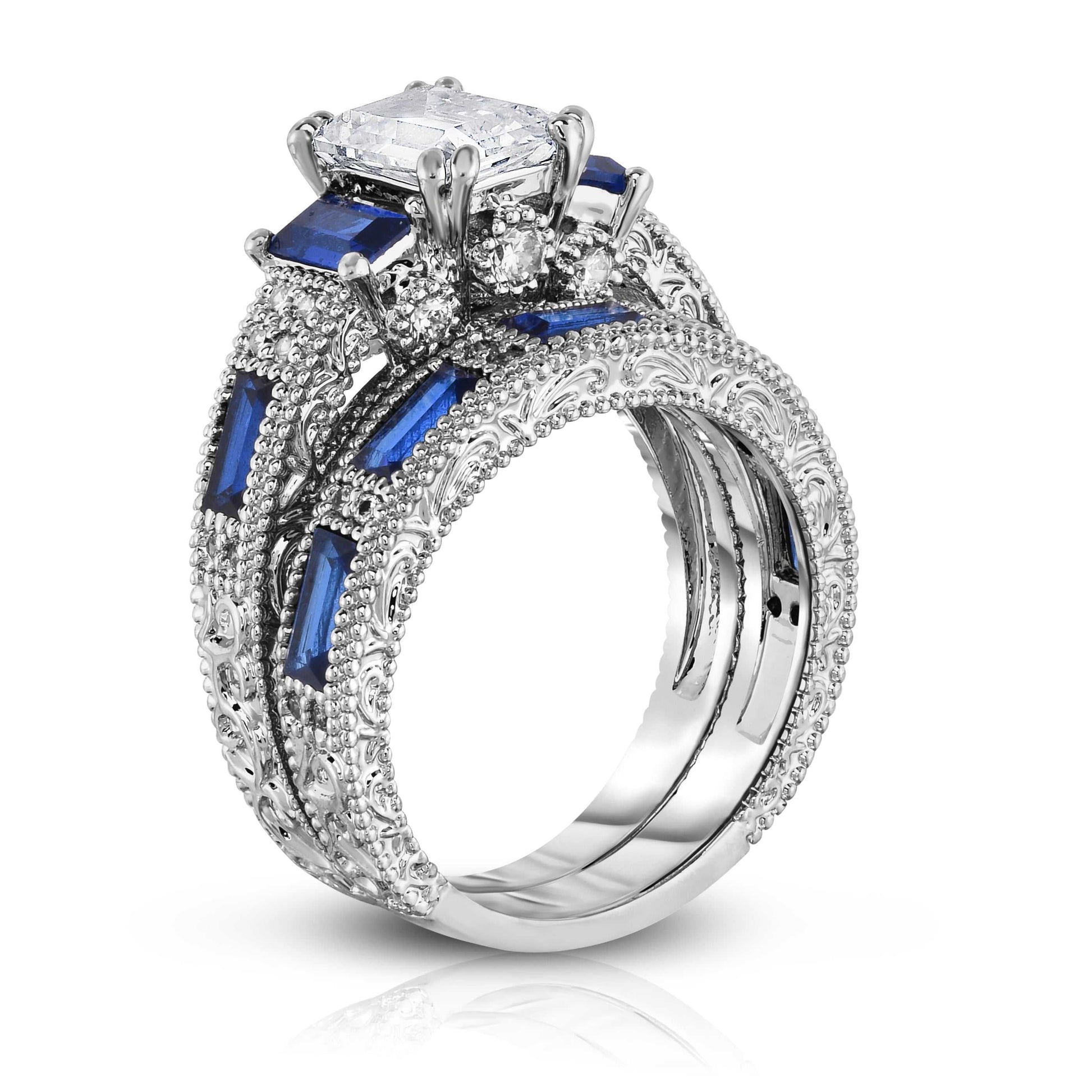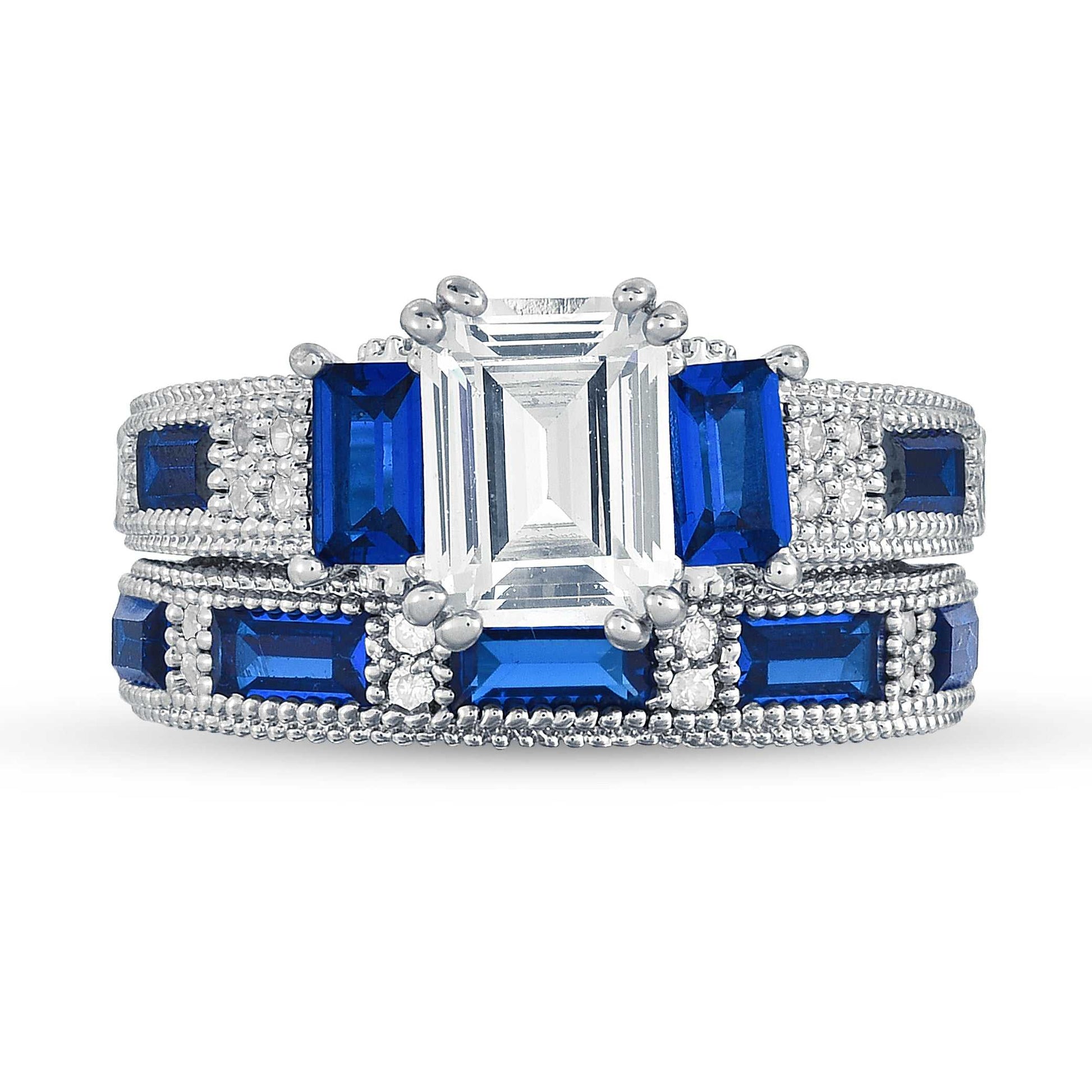 Emerald Cut Sapphire Ring and Band Set – 2 Piece