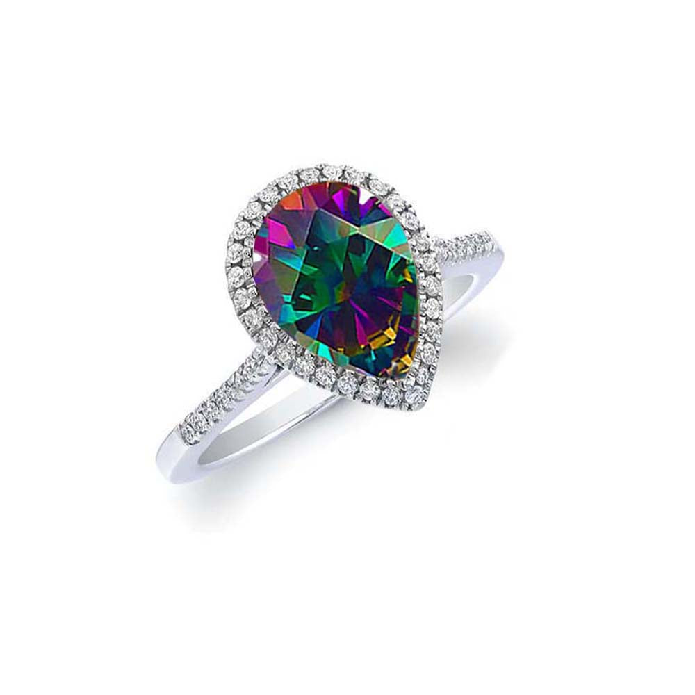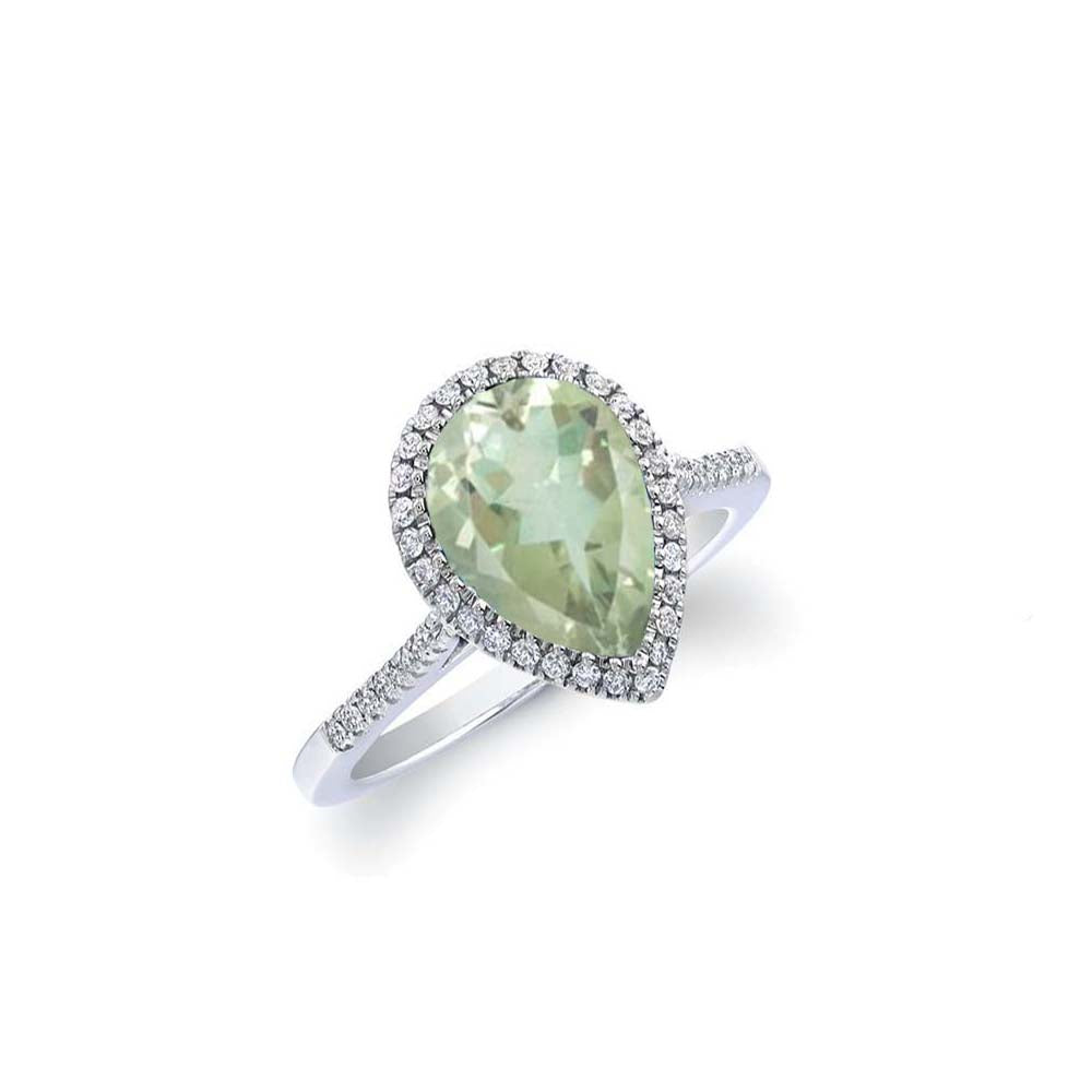 Genuine Gemstone Pear Cut Halo Sterling Silver Rings