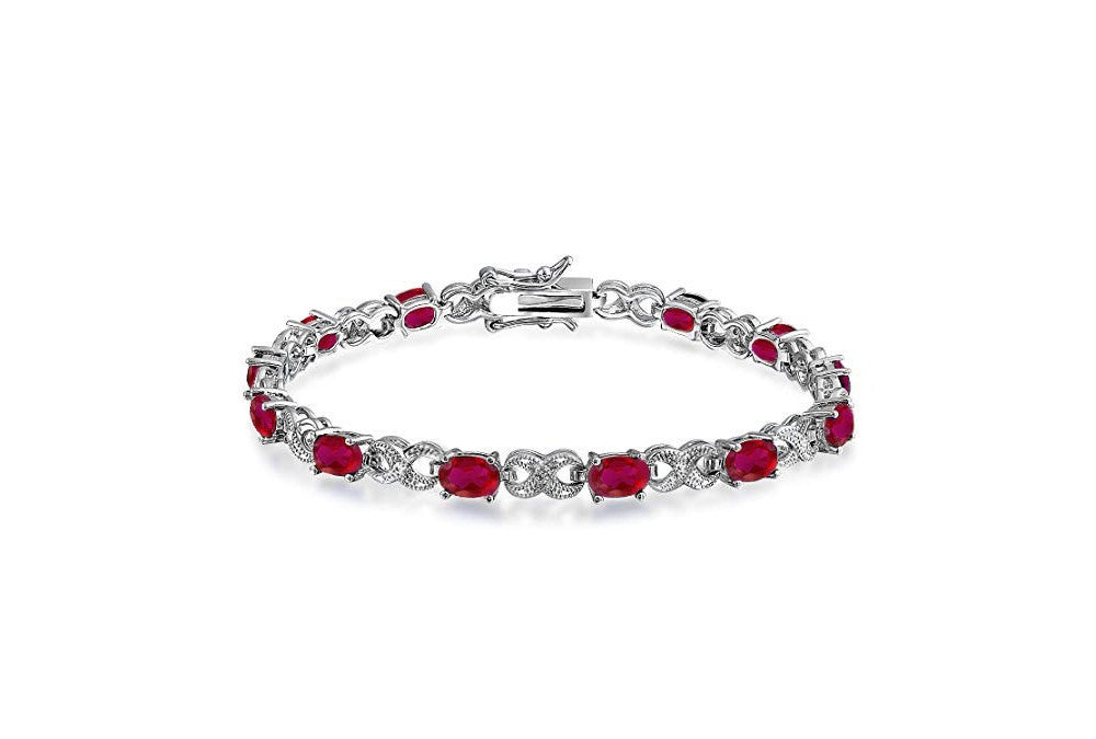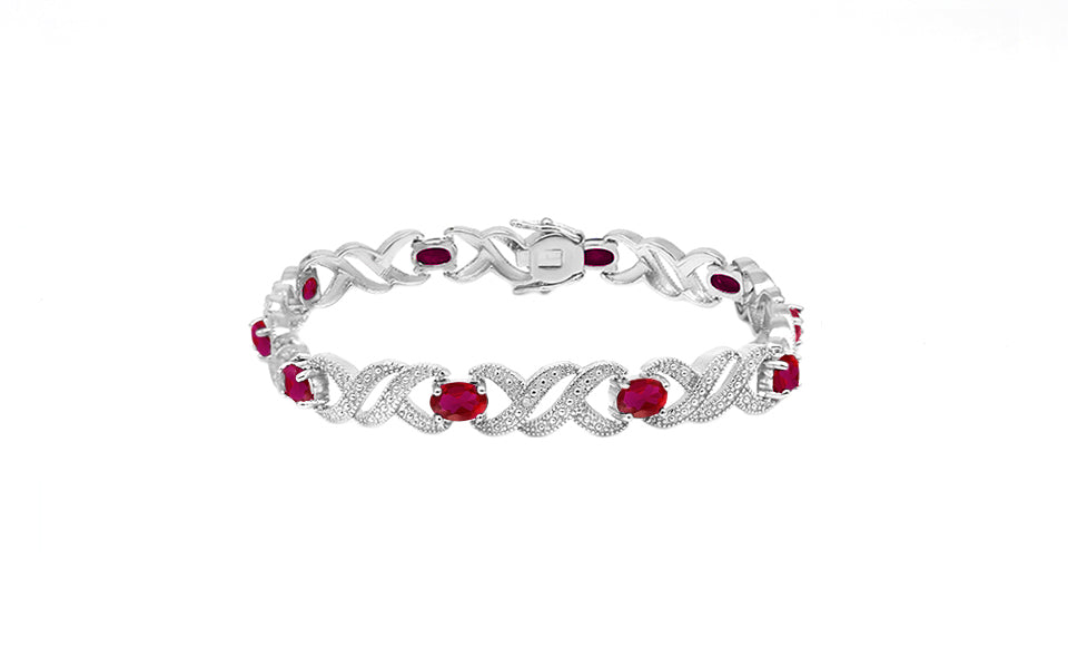 Genuine Ruby Gemstone And Diamond Accent Tennis Bracelet