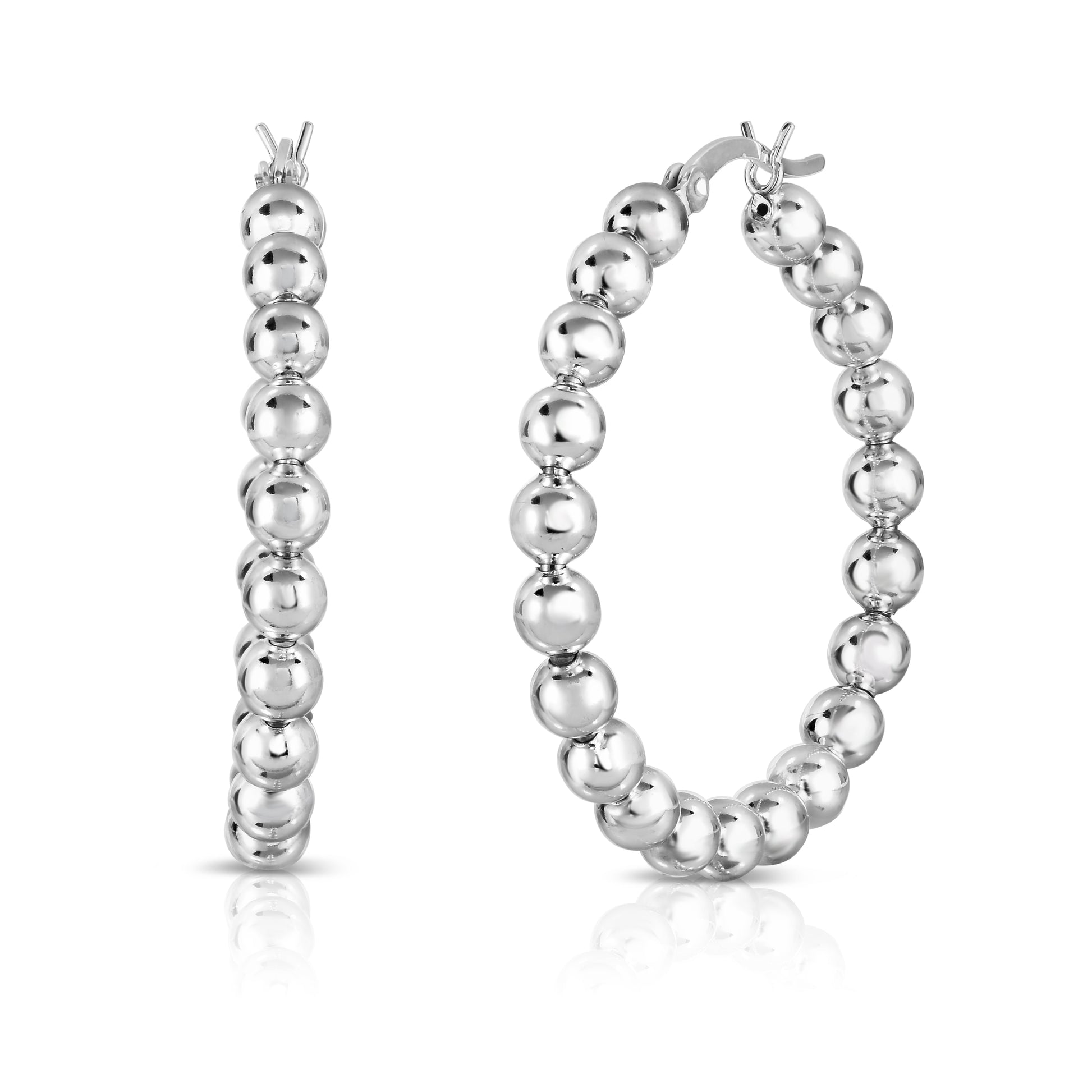 Solid Sterling Silver Beaded French Lock Hoop Earrings