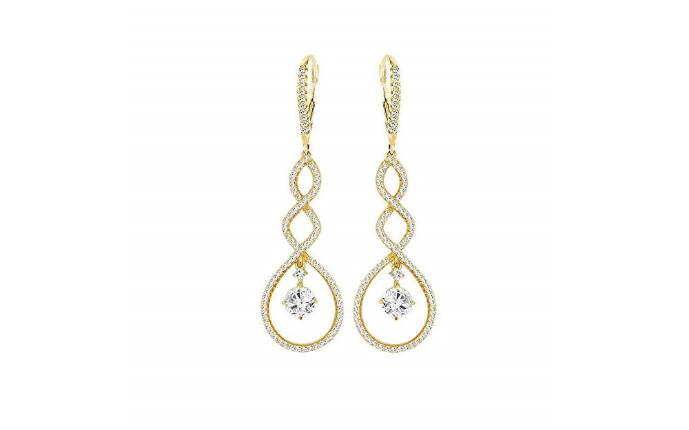 Spiral Drop Crystal Leverback Earrings – 18K Gold, Made with Swarovski Elements